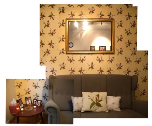 Building upon queerness and blackness as themes in his work, Jon’s installation Cotton and Magnolia focuses on family and southerness. This series forces the viewer to reflect on the past and present burdens of the Black Family in the South. Harkening on bourgeois home aesthetics, the Cotton and Magnolia wallpaper signifies the historical and transgenerational trauma built within the foundation and walls of our society. With a statue cast from his own hands and a collage film based on images created for his zine WE, Jon builds strong narratives that immerse the viewer in a breadth of perspectives and ideas.