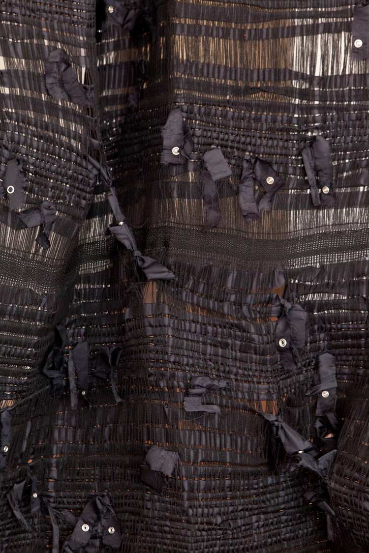Aqeel Malcolm’s Deconstructing the Barber-Cape takes apart, then weaves together, the barber cape, a stand-in for the barbershop as a locus of black masculinity. Examining the performative potential of a simple—yet highly recognizable—piece of nylon-polyester, Malcolm enters this fraught space as runway, as tapestry, as craft, reclaiming the familiar drape in service of a vision of the black male inseparable from his queerness.